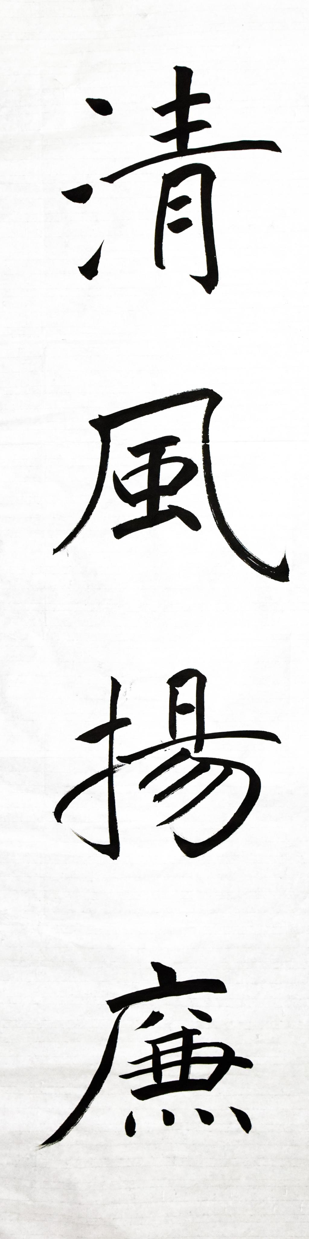 该作品以“清风扬廉”四字为核心。“清风”,象征着纯洁无瑕、公正无私的社会风气;“扬”,表达了作者希望廉洁文化能够被广泛传播的期望;“廉”,直接点题,代表着节俭、不贪、自律的道德品质。(作者 薛淼)