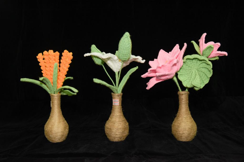 本作品为以莲花主题钩织的主题花卉,出淤泥而不染,濯清涟而不妖。在这件当代手作艺术品中,古老的诗句被赋予了新的生命。它以纤维的柔软,塑造出不可摧折的亭亭风姿;以手作的温度,守护着那份不染不妖的纯粹灵魂。它不仅仅是一朵花,更是一个独立洁净的精神世界的象征,提醒着我们在纷扰的现实中,始终保持内心的清澈与独立。(作者 姜明坤)