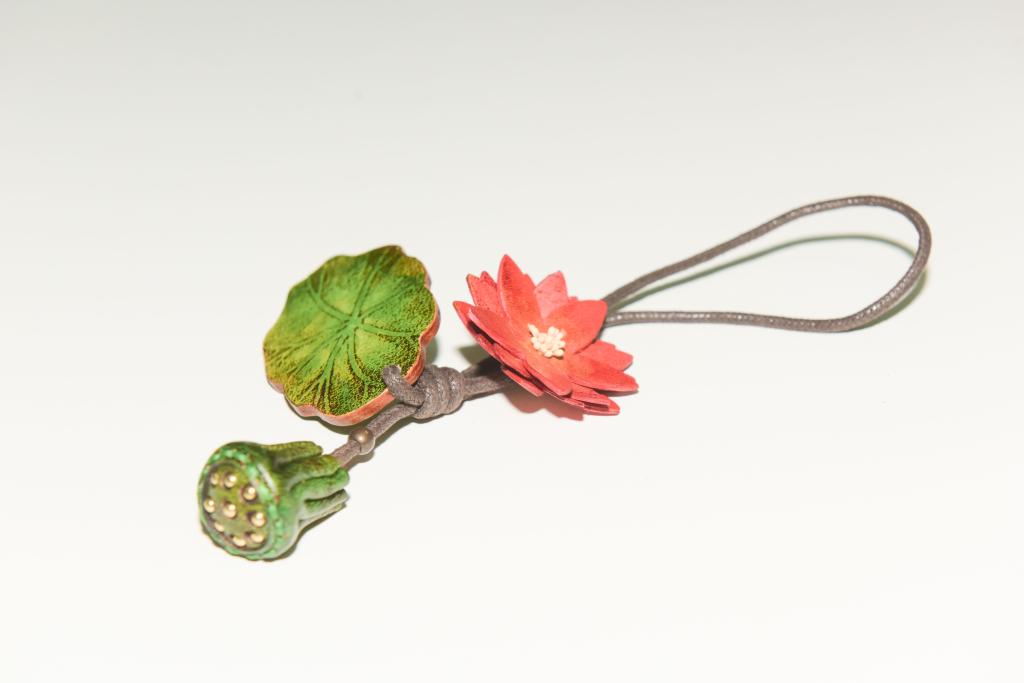 本作品以独特的真皮材质,重新诠释了莲花的经典意象。红莲灼灼,绿叶田田,取其形;青莲谐音“清廉”,寓其意。在一针一线的雕琢中,将“出淤泥而不染”的风骨,与“立世间而清廉”的品格融为一体。(作者 张欣妍)