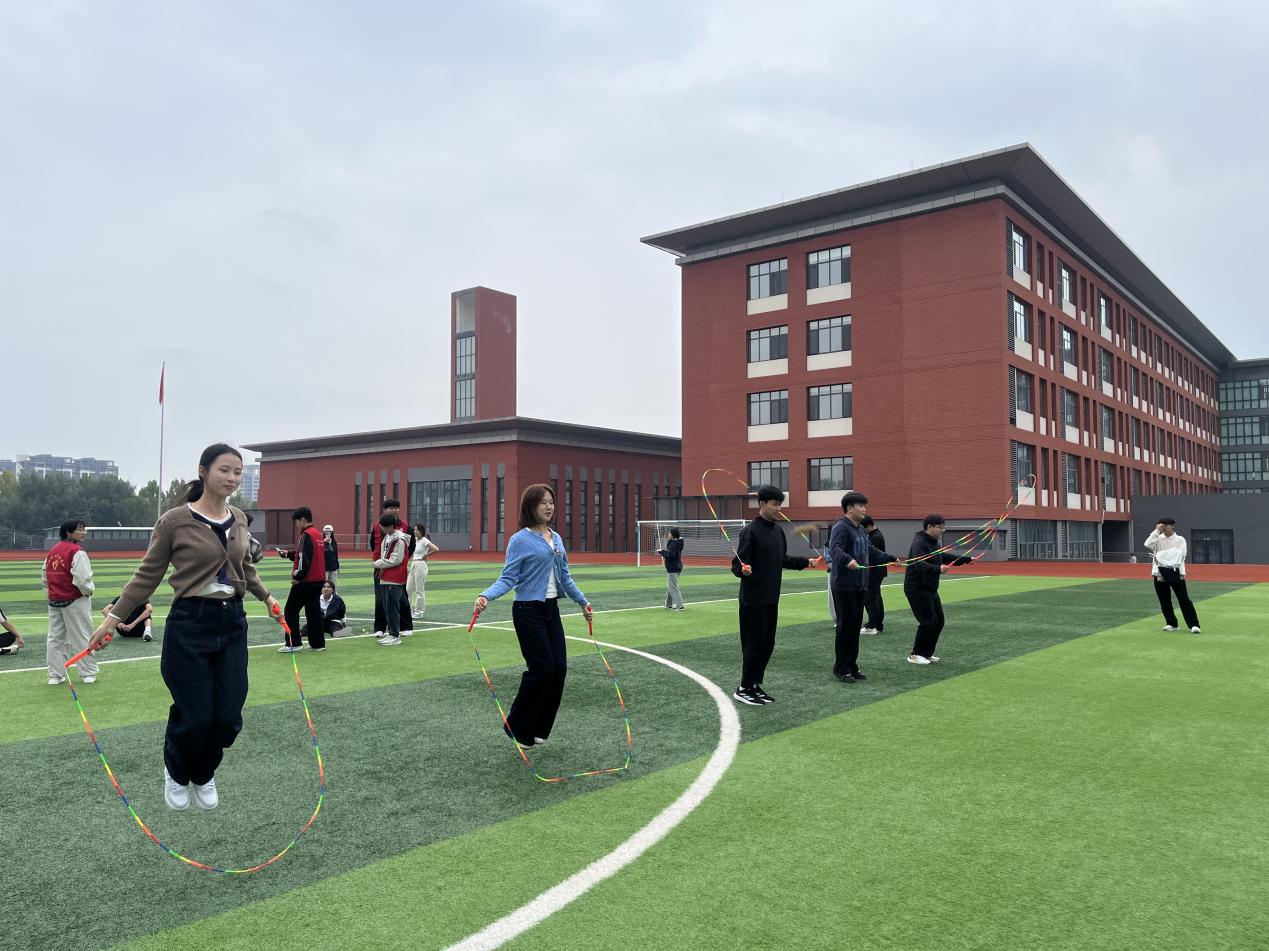 跳绳比赛一触即发。个人赛中,同学们身轻如燕,绳子甩出节奏感—这可不是临时抱佛脚,正是“每天体育锻炼一小时”的真实写照!团队接力更考验配合,有人跳得飞快,有人稳中求胜,欢呼与鼓励交织,运动的快乐原来这么简单!