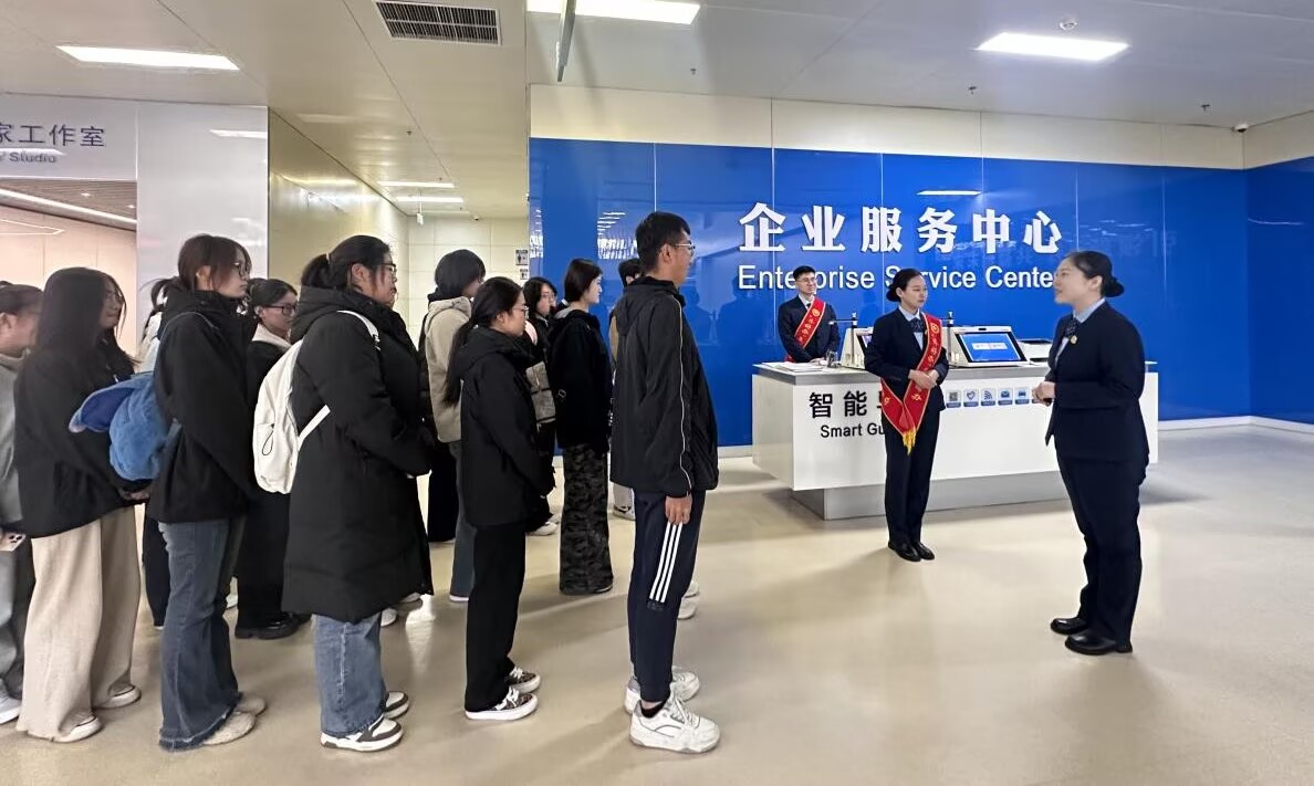 座谈环节,张经理系统阐释“一窗受理”“办好一件事”“管家式帮办代办”等创新服务模式的具体实施要求与操作规范。学生们结合参观所获与专业课程知识,就“岗位胜任能力要求”“服务标准落地难点”等实际问题展开积极提问。两名优秀员工代表分享了基层政务服务工作中的实战经验与成长故事,鼓励同学们夯实专业基础,培养“以人民为中心”的服务意识。