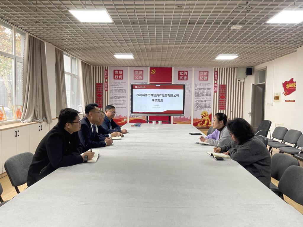 2025年11月10日,淄博市齐旭资产经营有限公司党委副书记、总经理王昊一行来校交流,工商管理系主任吕宁等老师参加。