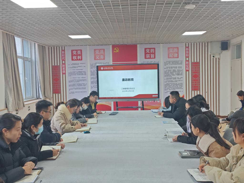 元旦将至,期末在即。为持续巩固党风廉政建设成效,增强全系教职工廉洁自律意识,12月25日,工商管理系党总支召开廉政专题教育会议,结合节假日特点与期末工作实际,为全系党员干部和教职工上了一堂生动的廉政课。会议由系党总支书记王茜主持。