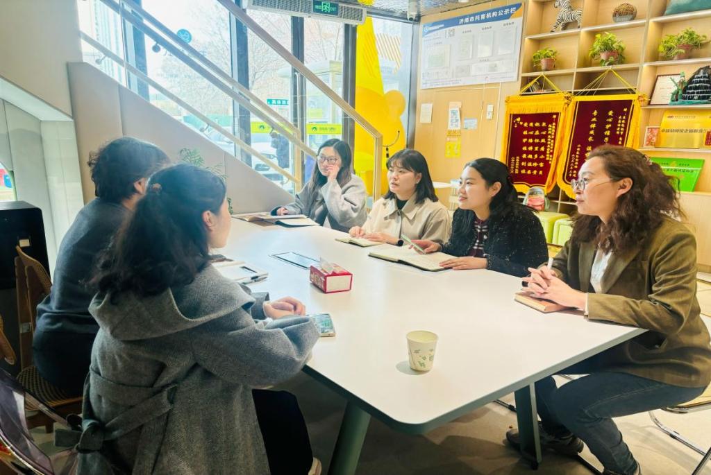 随后,团队赴济南泉抱抱托育园进行实地调研。在园区负责人的陪同下参观托育园的功能布局、环境创设及教学设施,在园区负责人的陪同下,团队参观了园区的功能布局、环境创设及教学设施,重点了解了生实习与就业、学生的岗位能力、高质量课程的实施、社区托育的建设等方面,并就当前托育服务中亟待解决的问题进行了深入的探讨。