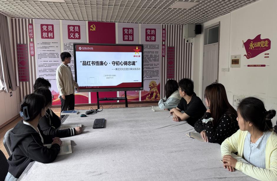 2026年4月16日,由工商管理系尚廉社分社主办的“品红书悟廉心・守初心铸忠魂”读书分享会在九教102教室顺利举行。社团负责人迟建宇及来自工商管理系的20余名学生共同参与此次活动。