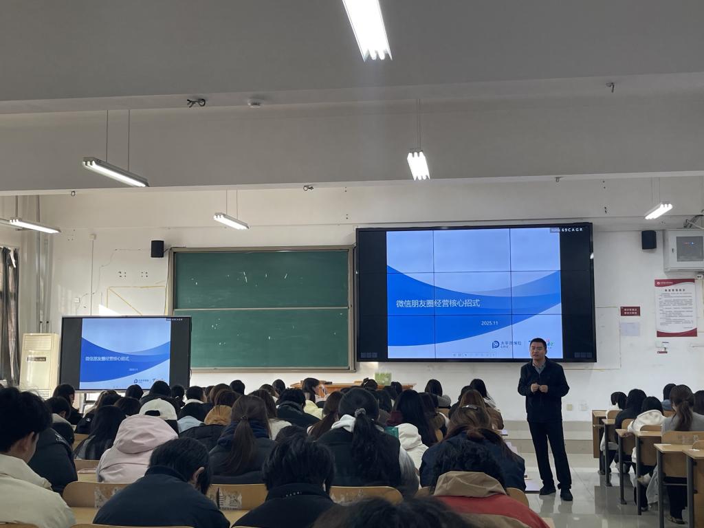 袁辉赞经理带来《数字营销》专题课程,以微信朋友圈运营为切入点,通过案例分析、互动演练等方式,深入讲解用户画像定位、内容创意策划及转化路径设计等实战技巧。学生们纷纷表示,课程内容贴近行业实际,对未来职业发展具有直接指导意义。