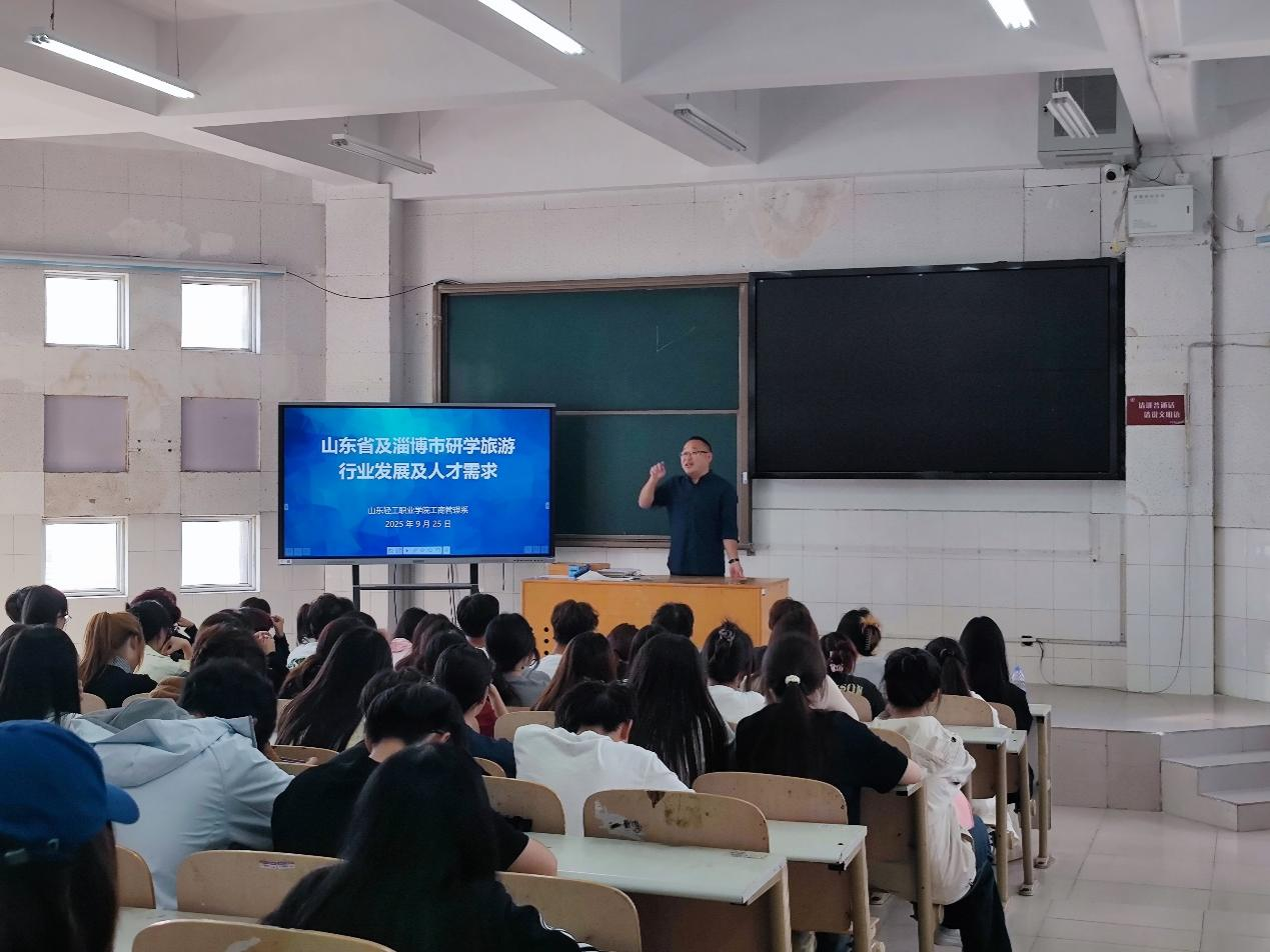 9月25日下午,工商管理系特邀原临淄区文旅集团研学部主任王科学开展“山东省及淄博市研学旅游行业发展及人才需求”主题讲座,并组织24级和25级全体研学旅行管理与服务专业学生参加。此次讲座旨在帮助学生深入了解研学旅游行业发展趋势,精准把握行业人才需求标准,为学生搭建连接校园与行业的沟通桥梁。