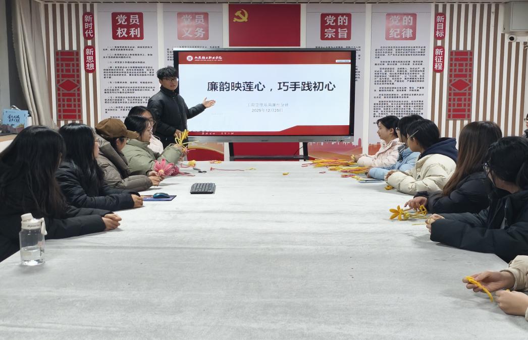为进一步深化“廉洁校园”建设,推动廉洁教育“进社团、进社区”,促进廉洁文化与立德树人根本任务有机融合,12月25日,工商管理系尚廉社在九教善学楼102成功举办“轻听”系列廉洁文化主题活动。活动以“莲”为媒、以艺传廉,采取“理论宣讲+手工创作”相结合的形式,让崇廉尚洁的价值观在生动实践中浸润师生心灵。